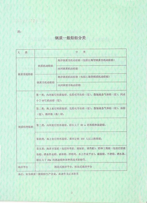 • 船舶制造許可證書反面